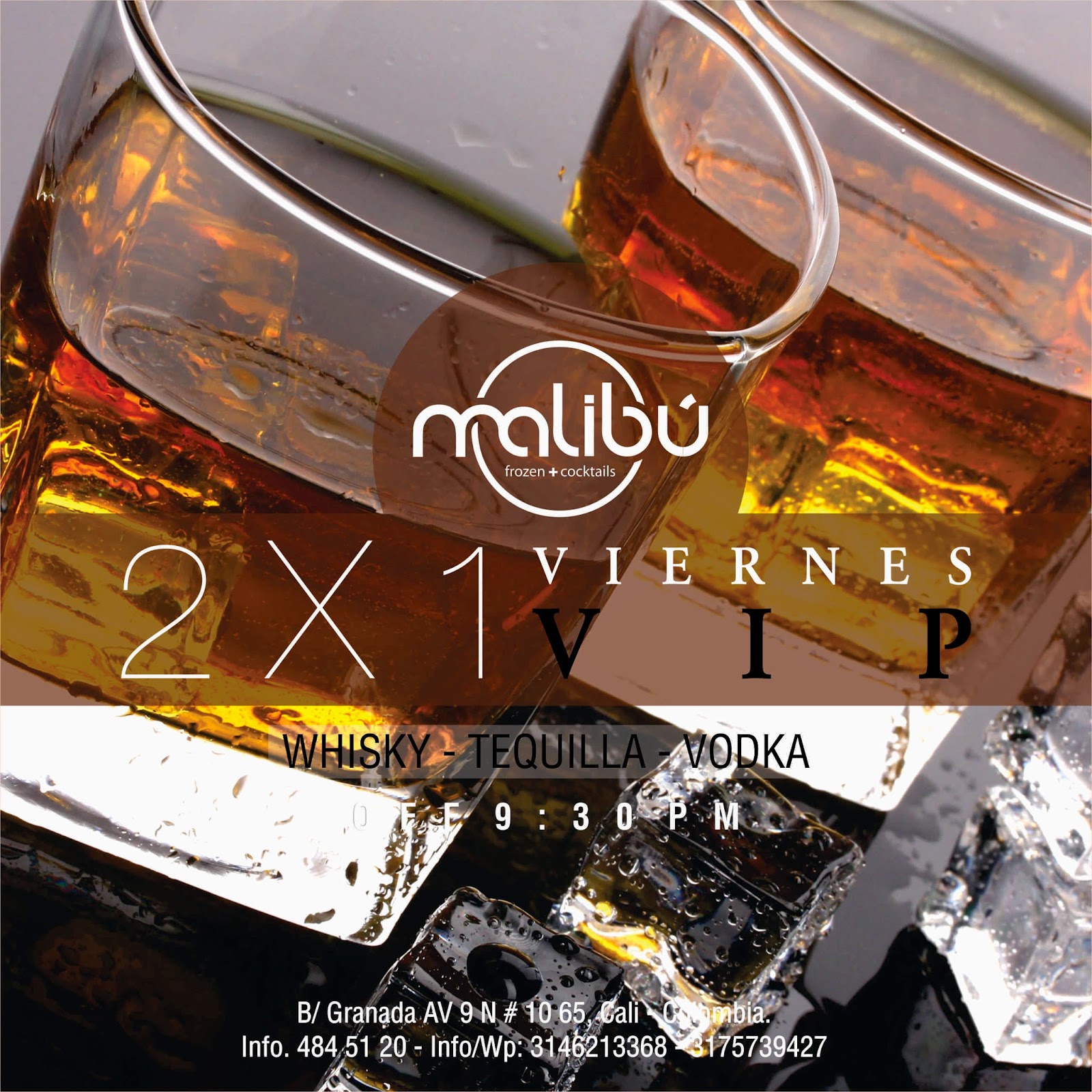 Hoy viernes aprovecha solo hasta las 9:30 pm Licores 2 x 1 en VIP
